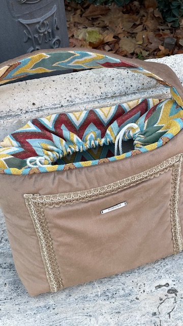 Este impresionante bolso shopper de asa lateral modelo Giraldilla, combina elegancia y practicidad, diseñado con un esmero que refleja la alta artesanía española. Con un tacto terciopelado que resulta agradable al contacto, este bolso presenta un elegante tono moka que combina con todo tipo de prendas. Se añade una pasamanería de adorno que le da un toque mas sofisticado.