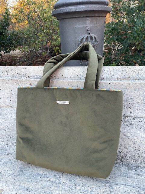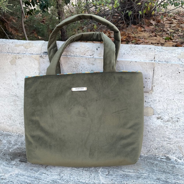 Bolso modelo SOFIA, confeccionado con una suave tela de tacto aterciopelado en un sofisticado color verde oliva. En el interior, un refinado forro estampado con un diseño en zigzag en tonos cálidos, bolsillo interno ideal para mantener tus pertenencias organizadas. El bolso incorpora un cierre magnético de tipo imán. Doble asa para mayor comodidad.